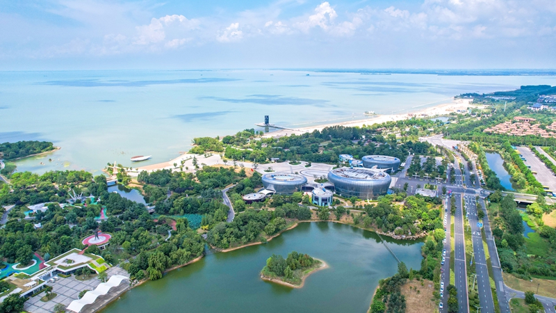 秋天的宿迁,骆马湖碧波飘荡,三台山花海绚烂,连片光伏板正在阳光下熠熠生辉。天然生态取绿色财产的活力交错,为这座江苏省最年轻地级市勾勒出层层“绿意”。