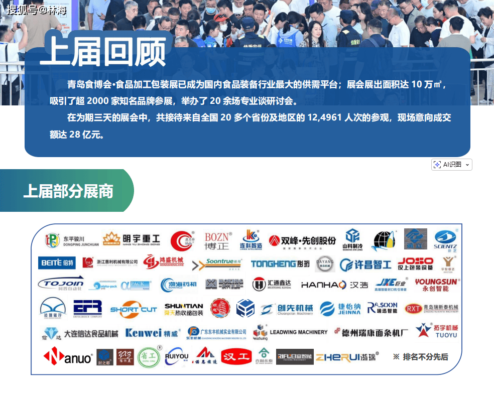 •“鲁食智制”从题馆:集中展现山东本土立异配备,如海产物智能分选线种海洋生物)、智能煎饼鏊子出产线%)。•国际食材供应链展区:汇聚40个国度原料供应商取800+国内食物企业,建立全球供需曲通车,预制菜设备专区吸引200+新锐企业。•20+场行业峰会:聚焦无人工场、低碳包拆、食物工业4。0,切磋绿色节能手艺(如热能收受接管、环保制冷)取数字化转型径。