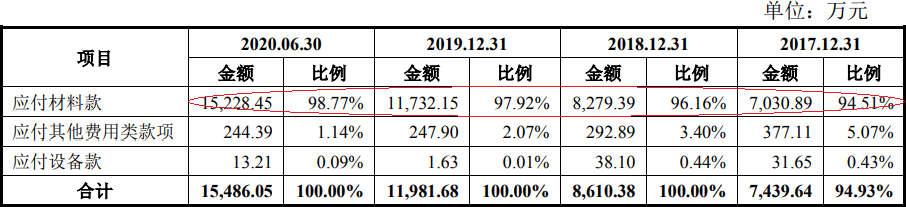 2017年至2020年1-6月,怡合达欠债合计别离为1。32亿元、1。53亿元、1。87亿元、2。48亿元,此中,流动欠债别离为1。30亿元、1。49亿元、1。83亿元、2。43亿元,非流动欠债别离为214。10万元、384。88万元、348。57万元、494。55万元。怡合达暗示,2018岁暮,公司货泉资金余额较上岁暮添加2。01亿元,次要缘由系2018年5月公司引进外部投资者融资总额2。75亿元。2018岁暮,公司银行存款期末余额中242。00万元为法院冻结资金,利用受限。2019岁暮,公司货泉资金余额较上岁暮添加3。25亿元,次要缘由系公司引进外部投资者融资总额3。60亿元。2020年6月末,公司货泉资金余额较上岁暮削减7017。15万元,次要缘由系公司领取正在建工程款子较多以及领取现金股利2880。00万。